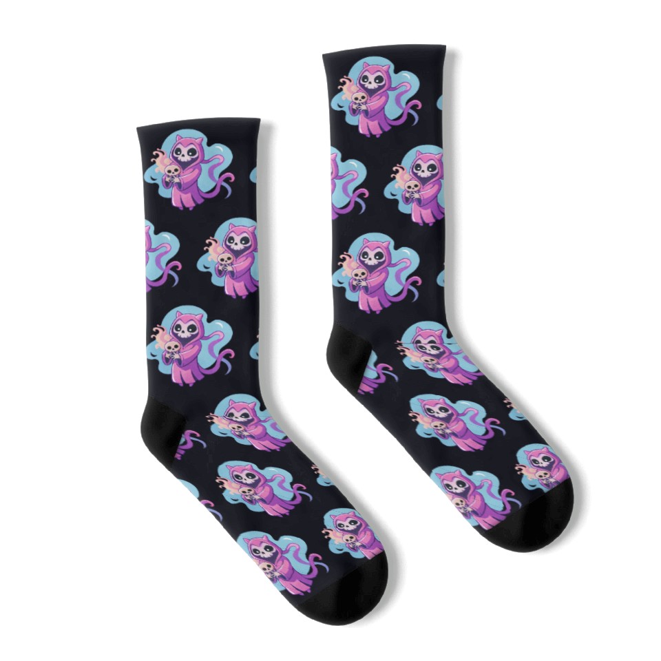 Buy stunning skeletal figure, violet pink robe, lavender puppy Socks or see more Socks products at Printblur right now to receive many amazing discounts!