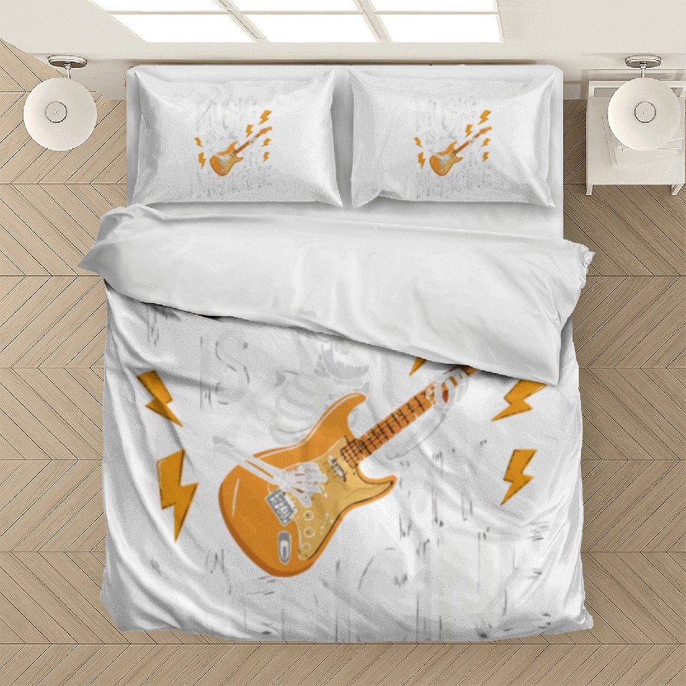 You are shopping for a stunning and trendy product Skeleton Guitar Player Bones Guitarist Musician Bedding Sets For WHITE belong theme Bedding Sets at Printblur