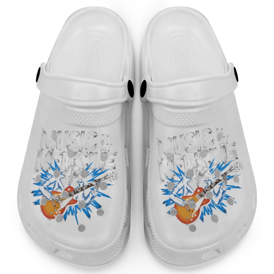 You're looking at the eye-catching product Skeleton Guitar Player Bones Guitarist Musician Clogs For Kids WHITE belong theme Clogs at Printblur