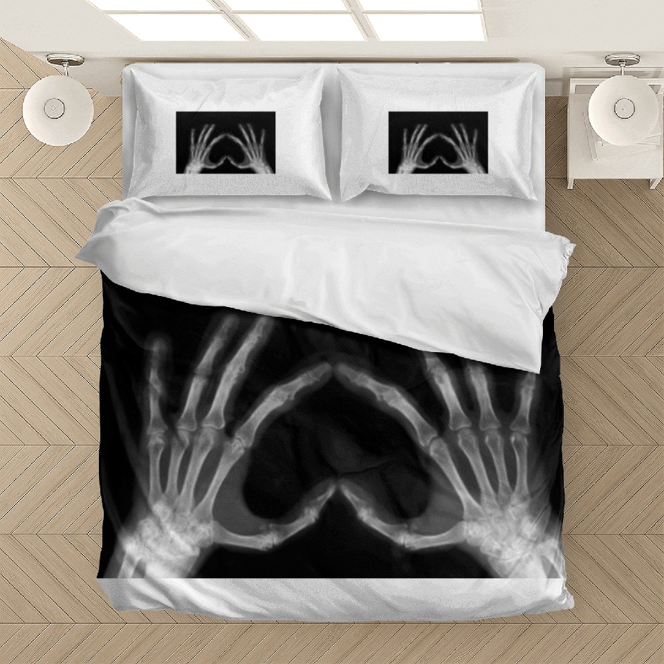 The item hot trend you're looking at is Skeleton Hand Heart Sign Bones Funny Halloween Bedding Sets For WHITE belong theme Bedding Sets at Printblur