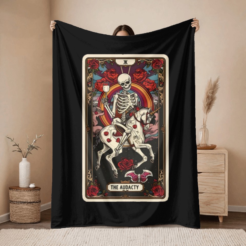 Buy eye-catching Skeleton on Unicorn Tarot Card Audacity Tarot Throw Blankets or see more Throw Blankets products at Printblur shop now to explore many surprises from our shop!