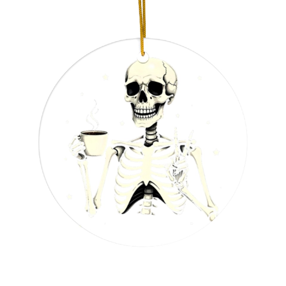 You are seeing a unique and impressive product Skeleton Peace Sign Drinking Coffee Fun Halloween Ceramic Ornaments For WHITE belong theme Ceramic Ornaments at Printblur