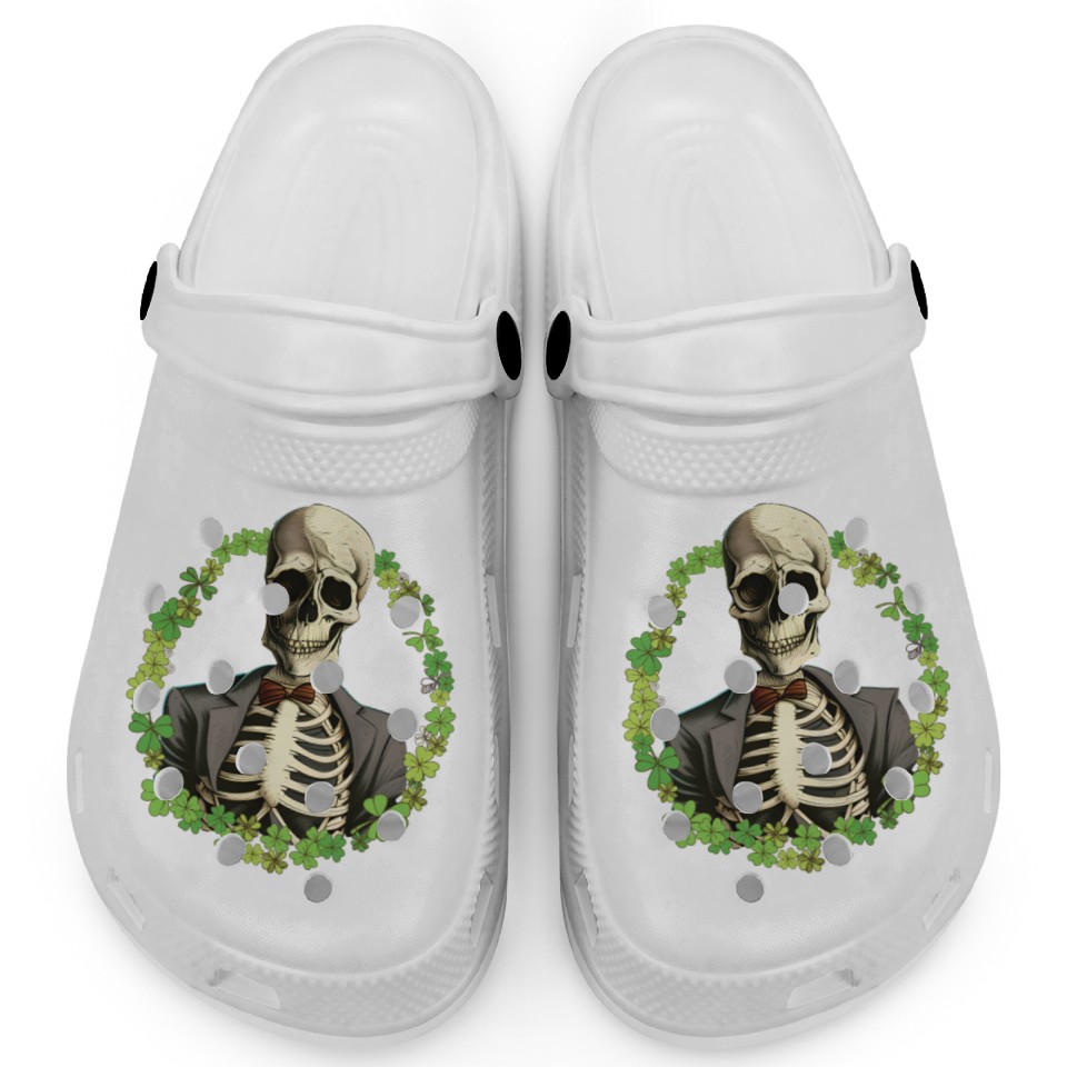 Skeleton Vintage Retro Creepy Cute Shamrock Clogs
