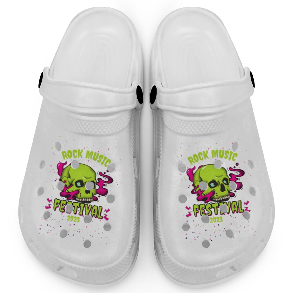 The item hot trend you're looking at is Skull Givin' Raspberry Dk , Rock music Clogs For Kids WHITE belong theme Clogs at Printblur