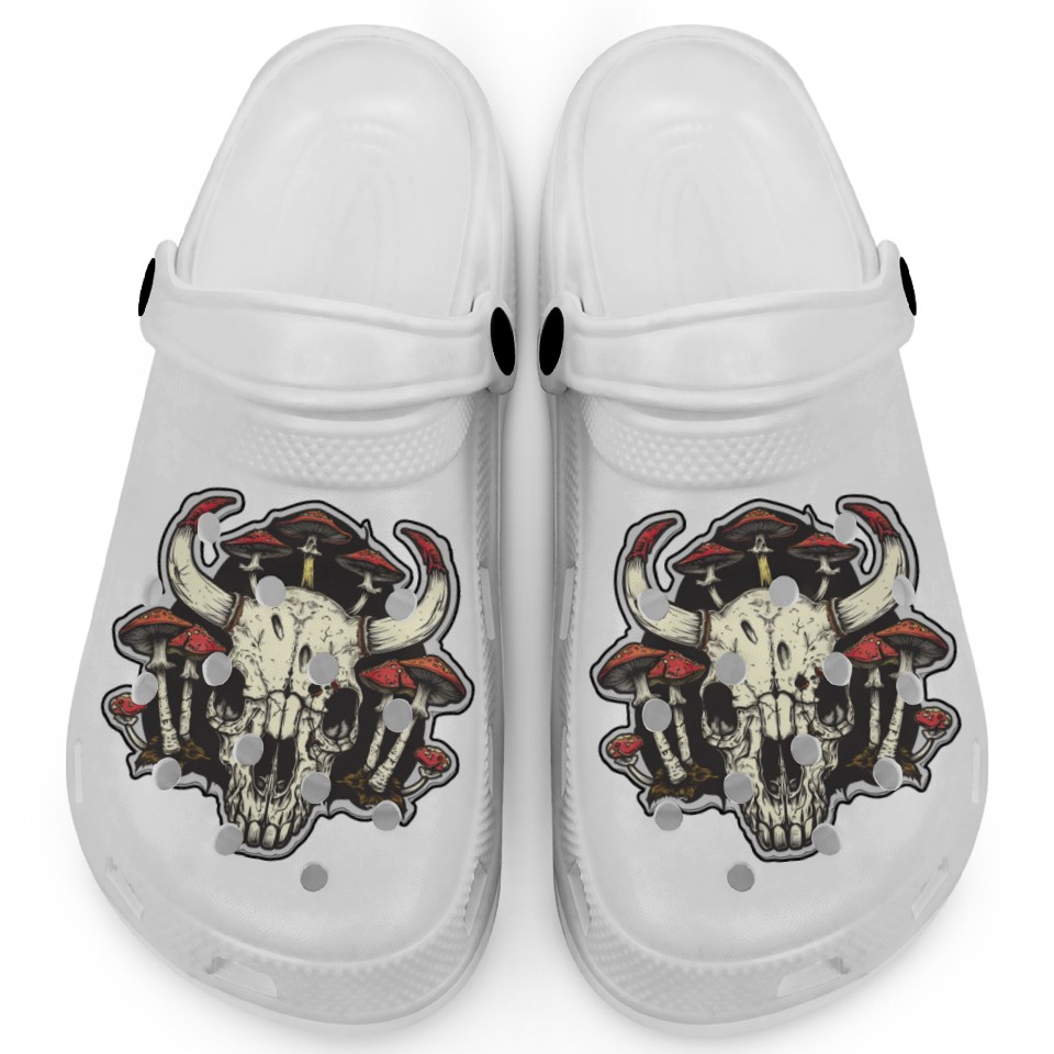 The product unique design you searched for is Skull Mushrooms Natural Motif Clogs For Kids WHITE belong theme Clogs at Printblur