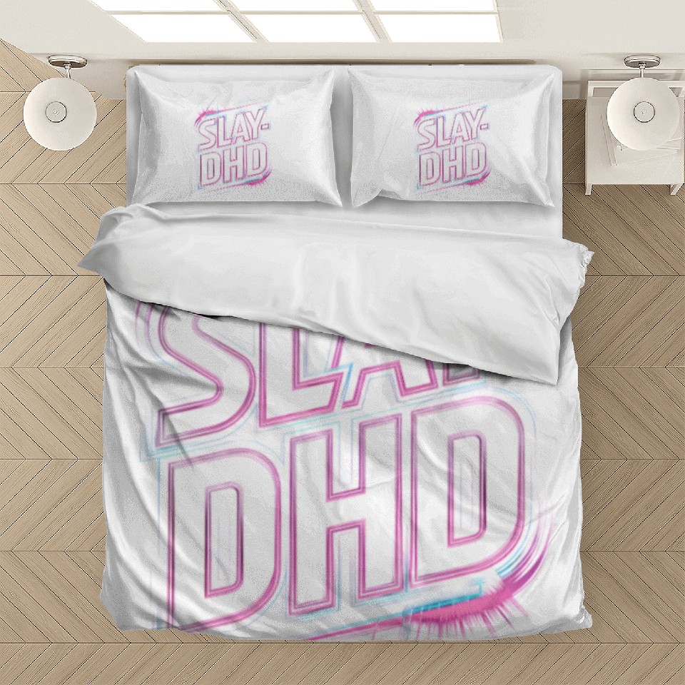 You are viewing an exclusive and elegant product Slay-DHD Neon Aesthetic Funny ADHD Design Bedding Sets For WHITE belong theme Bedding Sets at Printblur