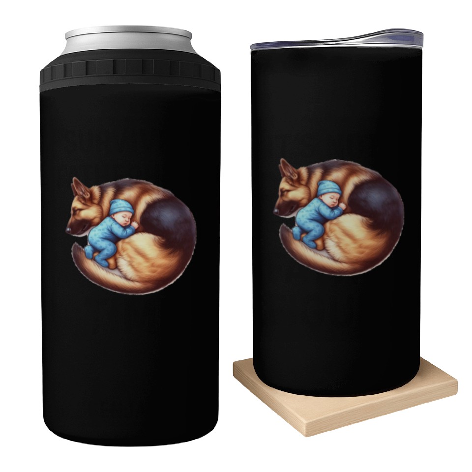 Sleeping Baby and German Shepherd Design Can Coolers