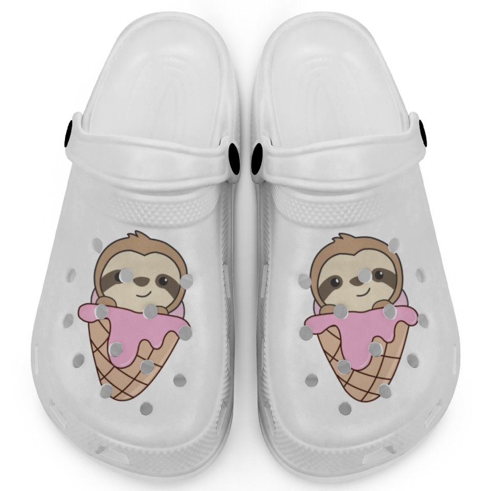 You are shopping for a stunning and trendy product Sloth Pink Ice Cream Waffle Cute Animals For Kids Clogs For Kids WHITE belong theme Clogs at Printblur