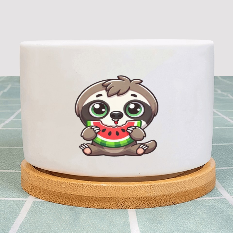 You are shopping for a stunning and trendy product Sloth with watermelon cartoon summer vibes Plant Pots For WHITE belong theme Plant Pots at Printblur