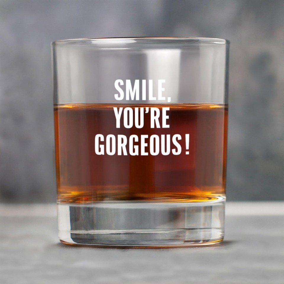 You are viewing an exclusive and elegant product Smile You're Gorgeous Positive Affirmation Rock Glasses For belong theme Rock Glasses at Printblur