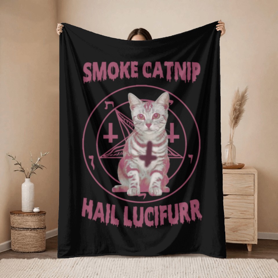 Shop for attractive Smoke Catnip Hail Lucifurr Throw Blankets or see more Throw Blankets products on https://printblur.com right now!