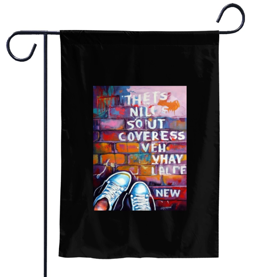 You're searching for a one-of-a-kind product Sneaker Street Art: Rebel Typography on Brick Wal Garden Flags For Black belong theme Garden Flags at Printblur