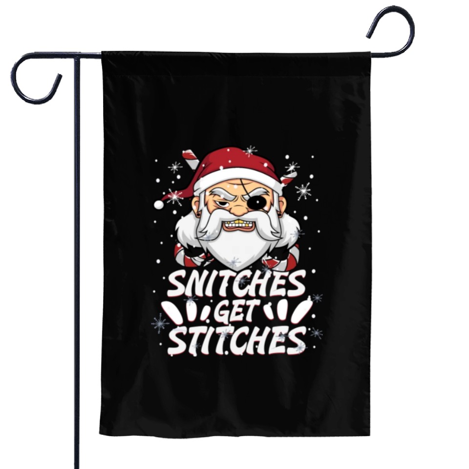 Buy eye-catching Snitches Get Stitches Santa Hat Funny Santa Pirate Garden Flags or see more Garden Flags products at Printblur shop now to explore many surprises from our shop!