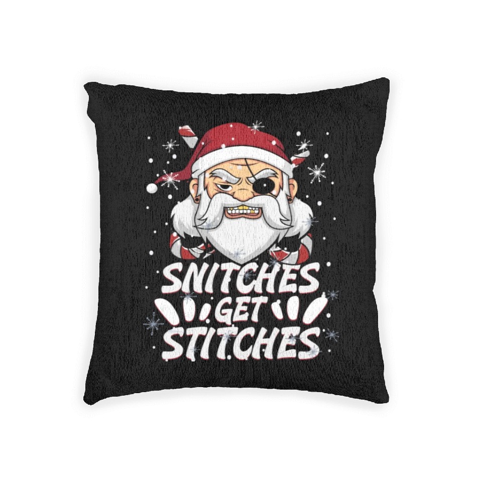 You're taking a peek at the product Snitches Get Stitches Santa Hat Funny Santa Pirate Woven Pillows For Black belong theme Woven Pillows at Printblur