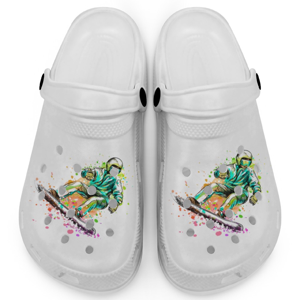 You're looking at the eye-catching product Snowboard Snowboarding Snowboarder Clogs For Kids WHITE belong theme Clogs at Printblur