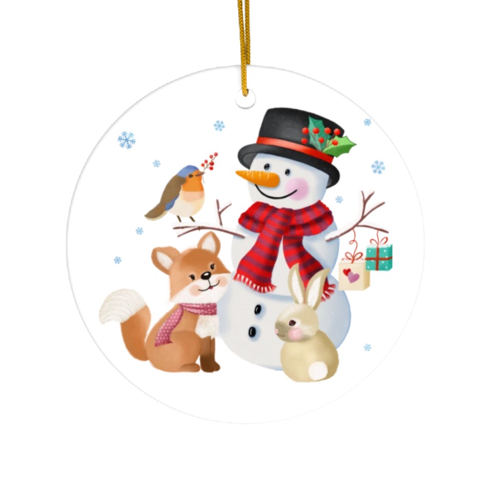 Own fascinating Snowman with fox, rabbit and robin Ceramic Ornaments or see more Ceramic Ornaments products now from Printblur shop to enjoy your shopping time!