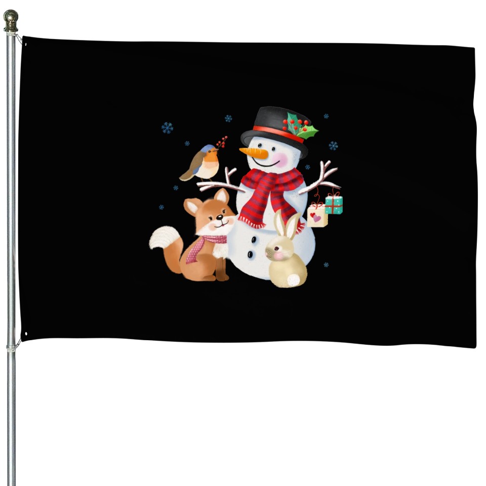 You're looking at the eye-catching product Snowman with fox, rabbit and robin House Flags For Black belong theme House Flags at Printblur