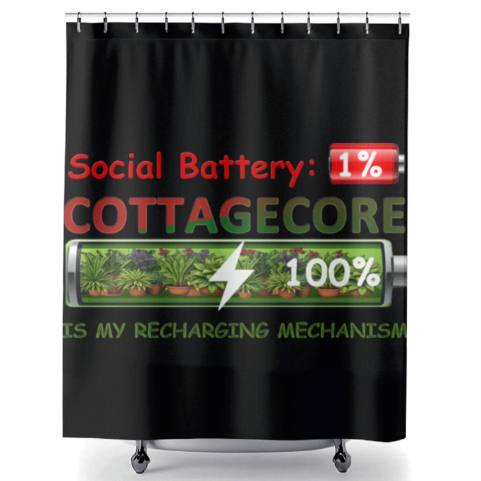 Shop for attractive Social Battery 1%, Cottagecore Recharging Mehanism Shower Curtains or see more Shower Curtains products on https://printblur.com right now!