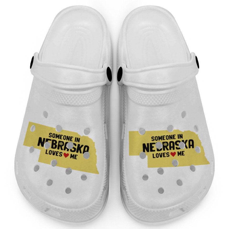 The item hot trend you're looking at is Someone In Nebraska Loves Me Clogs For Kids WHITE belong theme Clogs at Printblur