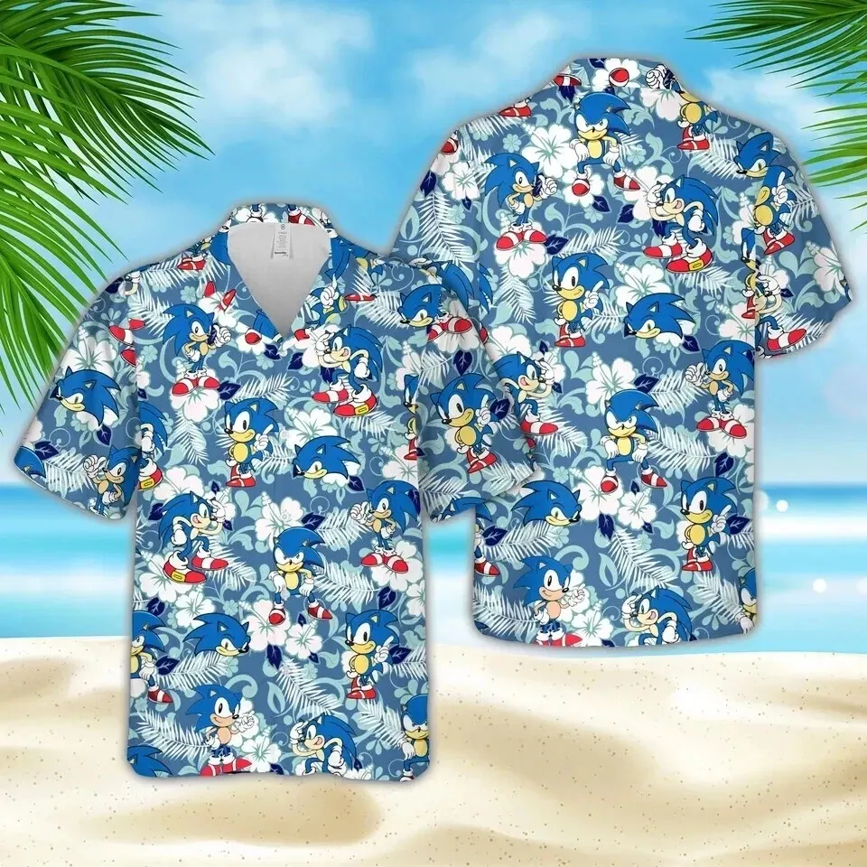 You are viewing an exclusive and elegant product Sonic The Hedgehog Hawaiian Button Down Shirt Unisex Adults For Kids belong theme Hawaiians at Printblur
