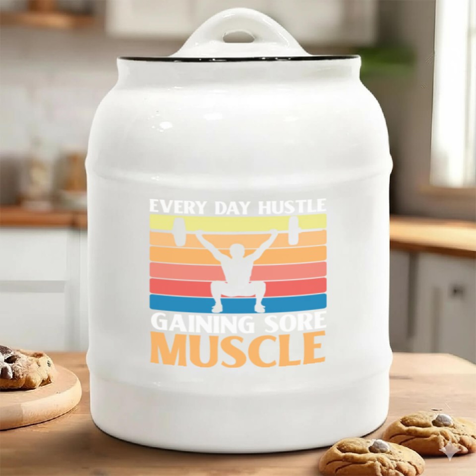 You're searching for a one-of-a-kind product Sore Muscles Hustle Body Builder Fitness Workout Ceramic Cookie Jars For belong theme Ceramic Cookie Jars at Printblur