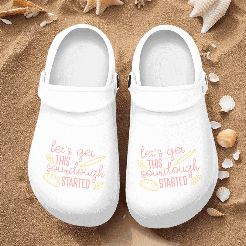 The item hot trend you're looking at is Sourdough Bread Baking Nurse Clogs For Men WHITE belong theme Nurse Clogs at Printblur