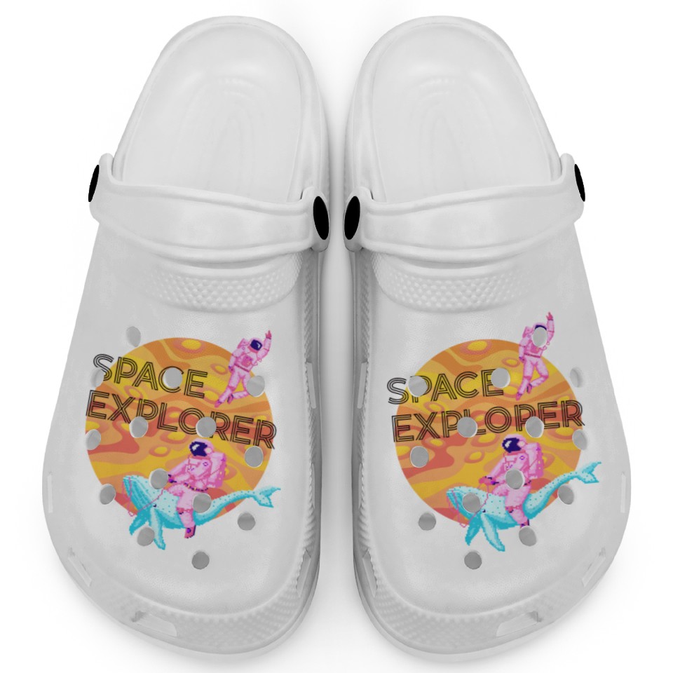 Space Explorer Two Astronauts and A Blue Whale Clogs