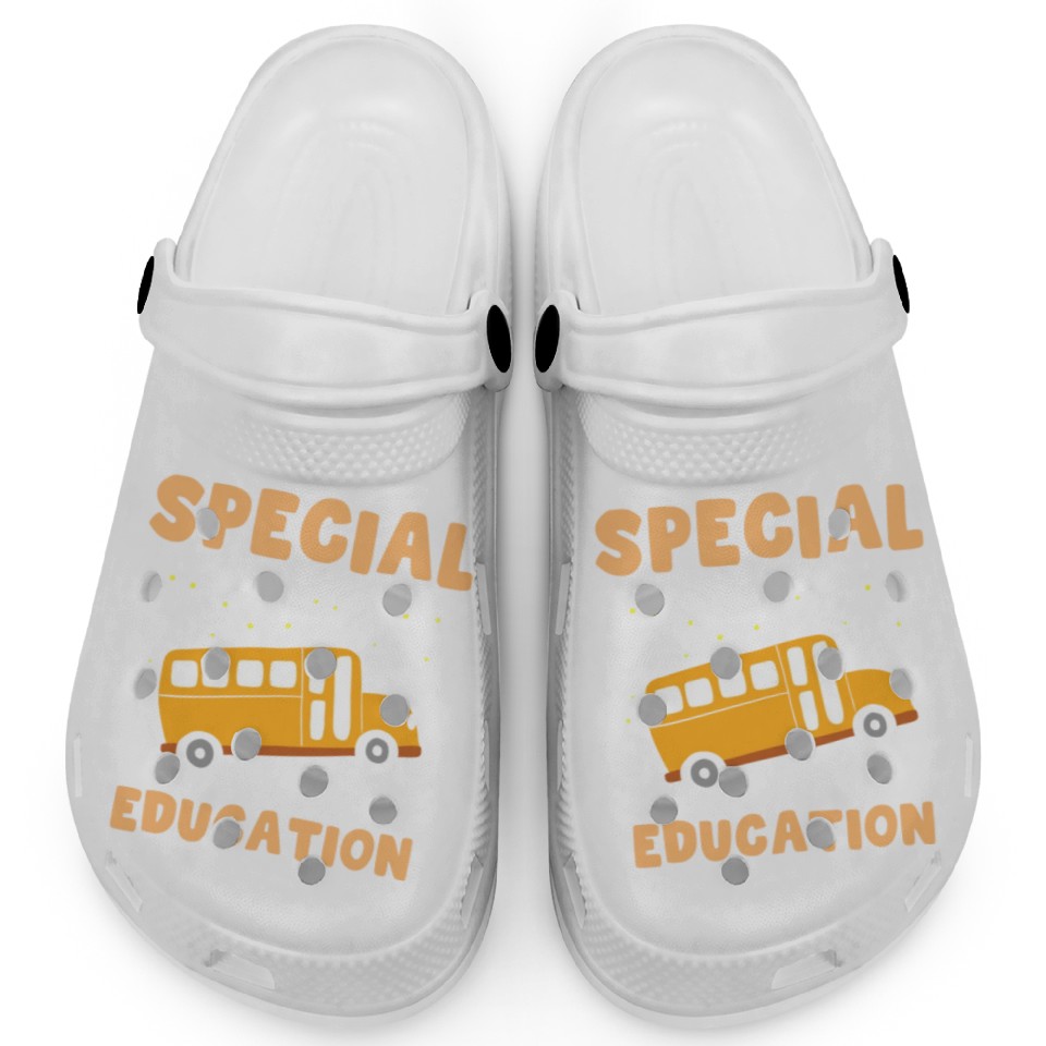 You're searching for a one-of-a-kind product Special Education Awareness Sped Teacher Cute Clogs For Kids WHITE belong theme Clogs at Printblur