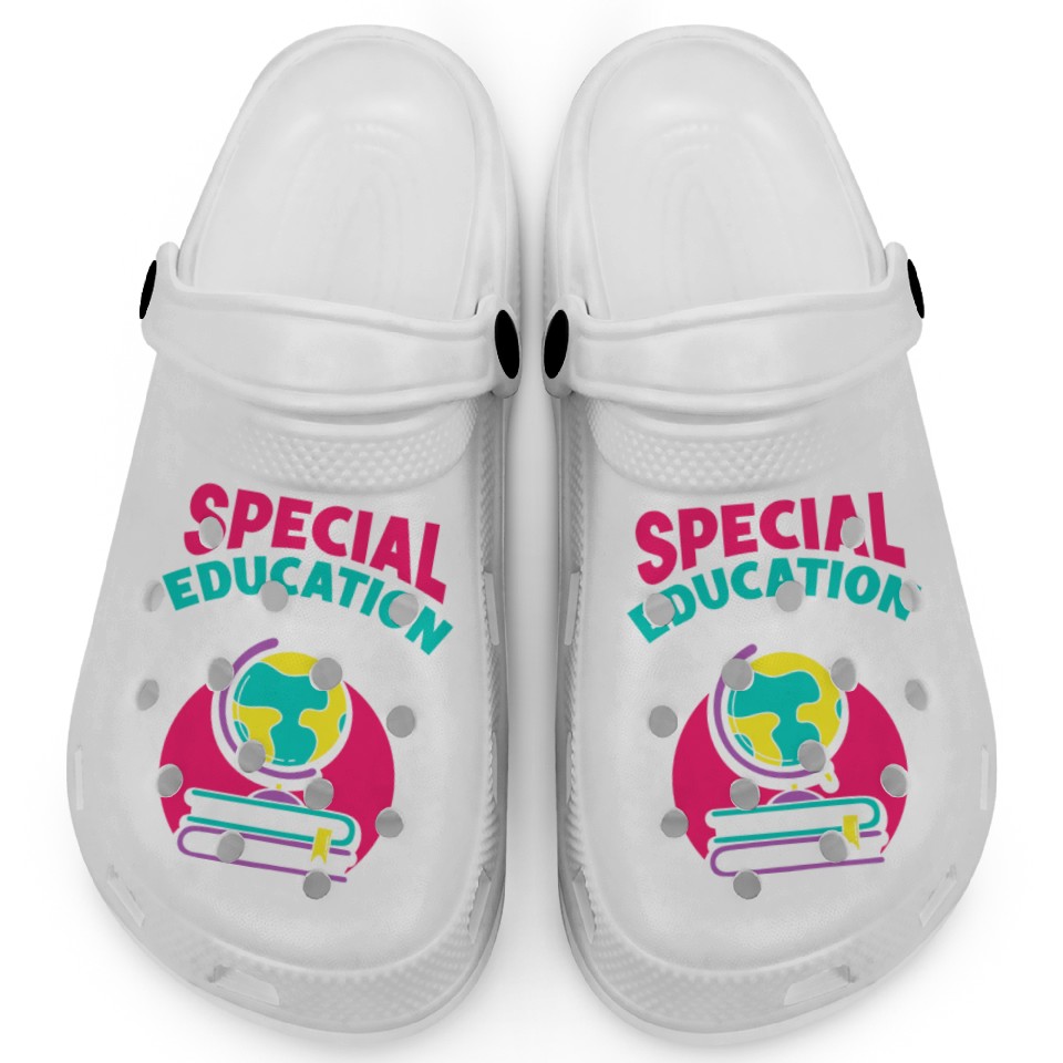 You're taking a peek at the product Special Education Teacher Sped Awareness Cute Clogs For Kids WHITE belong theme Clogs at Printblur