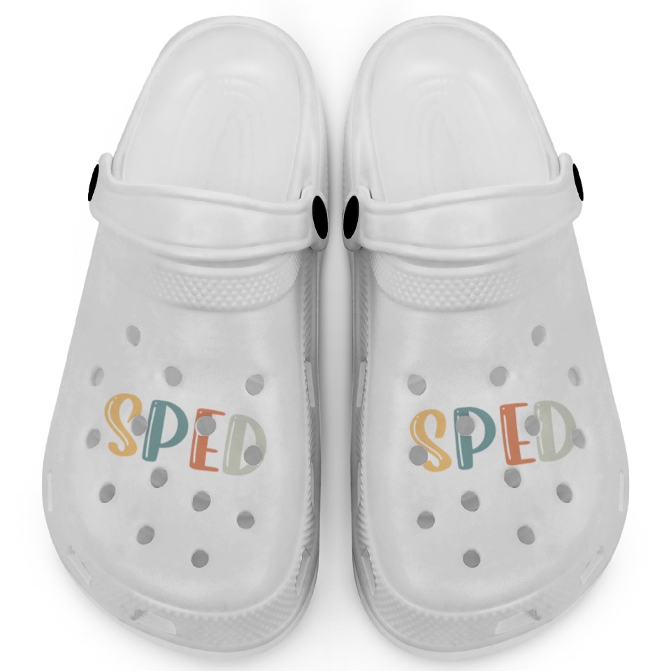 You are contemplating one of the best-selling products Sped Crew SPED Teacher Special Education Team SPED Clogs For Kids WHITE belong theme Clogs at Printblur
