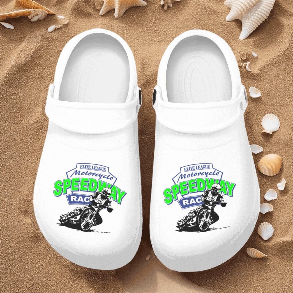 You're searching for a one-of-a-kind product Speedway Racing Nurse Clogs For Men WHITE belong theme Nurse Clogs at Printblur