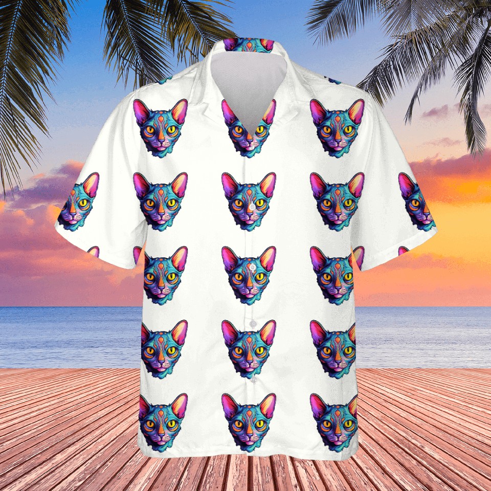 Shop for attractive Sphynx Cat kitty Psychedelic Vibrant Colors Hawaiians or see more Hawaiians products on https://printblur.com right now!