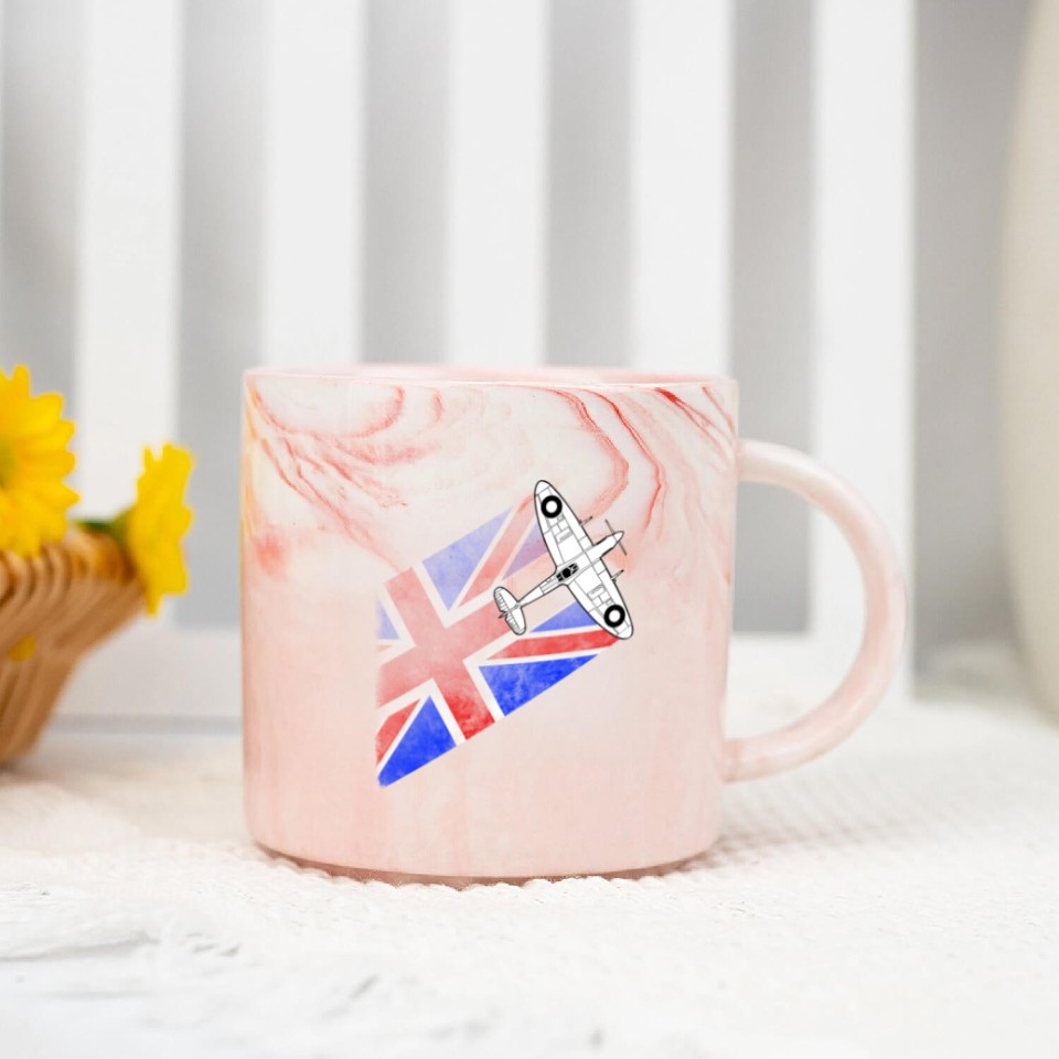 You are seeing a unique and impressive product Spitfire UK Flag Mk.1 RAF British WWII Marble Mugs For Pink belong theme Marble Mugs at Printblur
