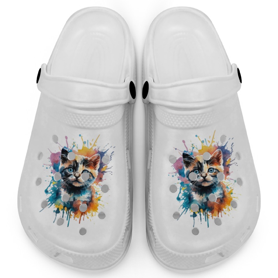 Splash Baby Cat Art, Cat Lover, Colorful Cat Clogs