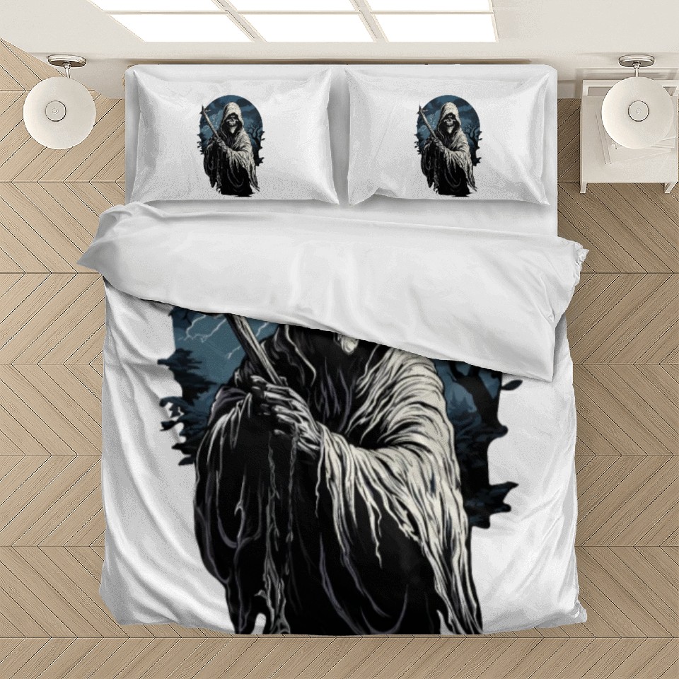 Own fascinating Spooky Halloween Grim Reaper Bedding Sets or see more Bedding Sets products now from Printblur shop to enjoy your shopping time!