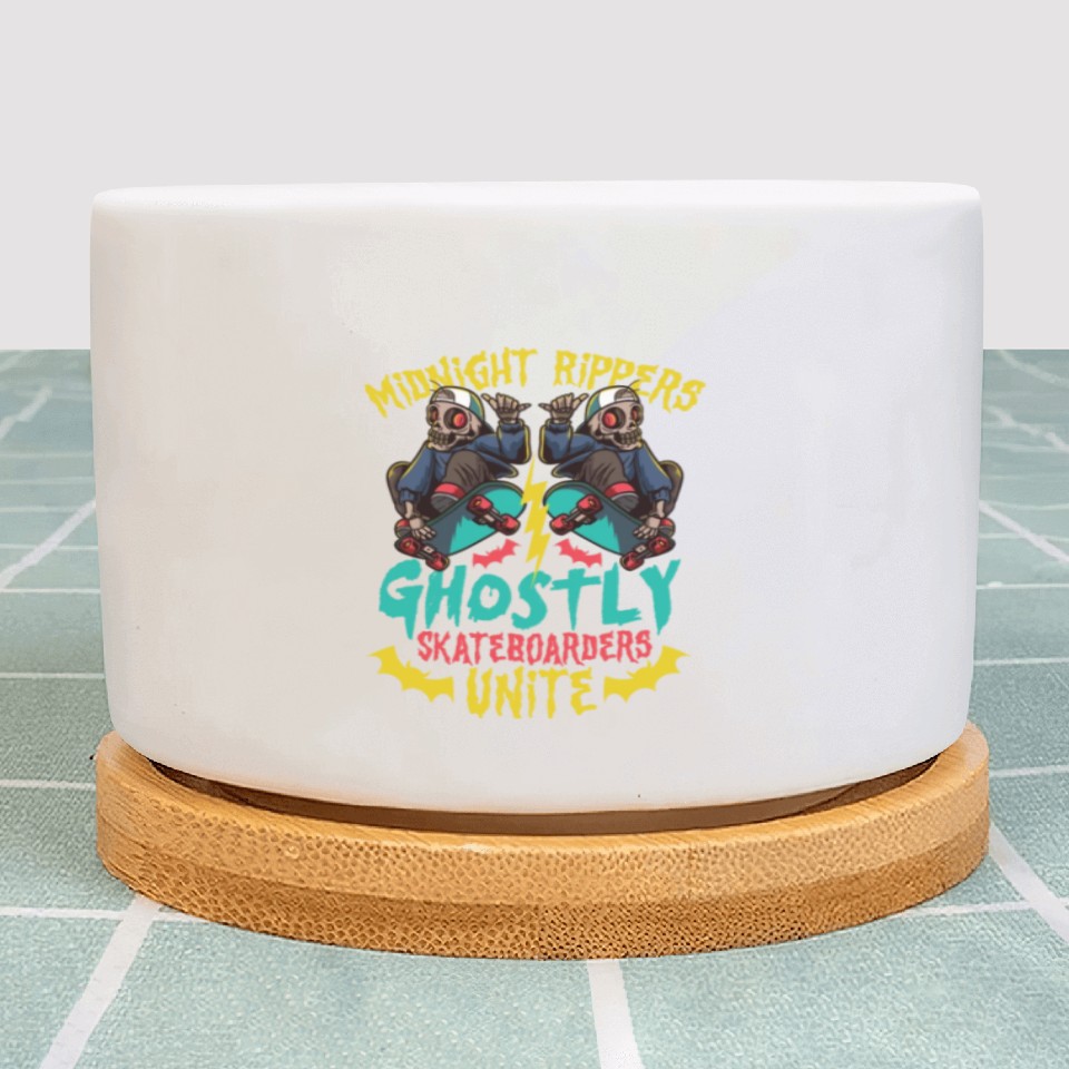 The item hot trend you're looking at is Spooky Horror Skateboarder Halloween Skateboarding Plant Pots For WHITE belong theme Plant Pots at Printblur