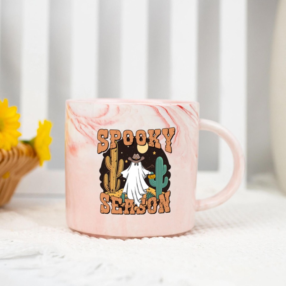 You are viewing one of the trendiest products Spooky Season Western Ghost Halloween Marble Mugs For Pink belong theme Marble Mugs at Printblur