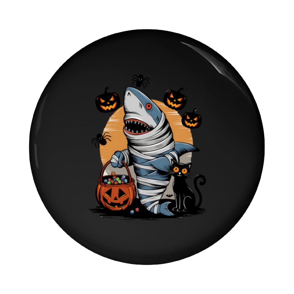 You are shopping for a stunning and trendy product Spooky Shark Mummy and Black Cat Trick-or-Treat Pin Buttons For Black belong theme Pin Buttons at Printblur