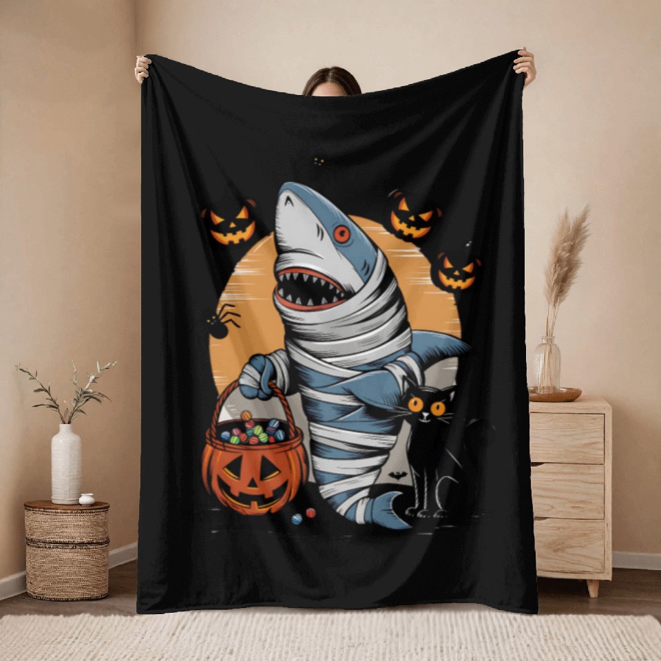 Buy stunning Spooky Shark Mummy and Black Cat Trick-or-Treat Throw Blankets or see more Throw Blankets products at Printblur right now to receive many amazing discounts!