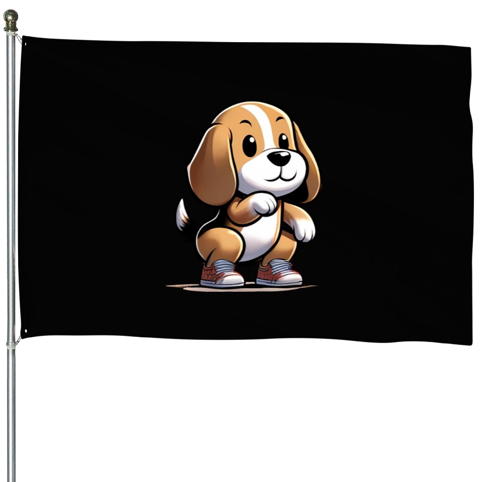 Shop for impressive Squat Squad: Beagle's Fitness Journey House Flags or see more House Flags products right now on Printblur to enjoy your happiness!