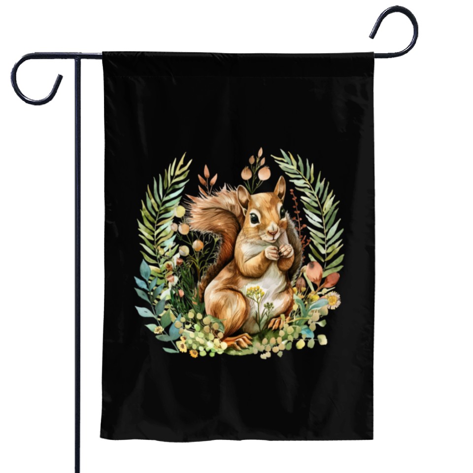 You are viewing an exclusive and elegant product Squirrel Clipart - Woodland Creatures Art, Cute Garden Flags For Black belong theme Garden Flags at Printblur