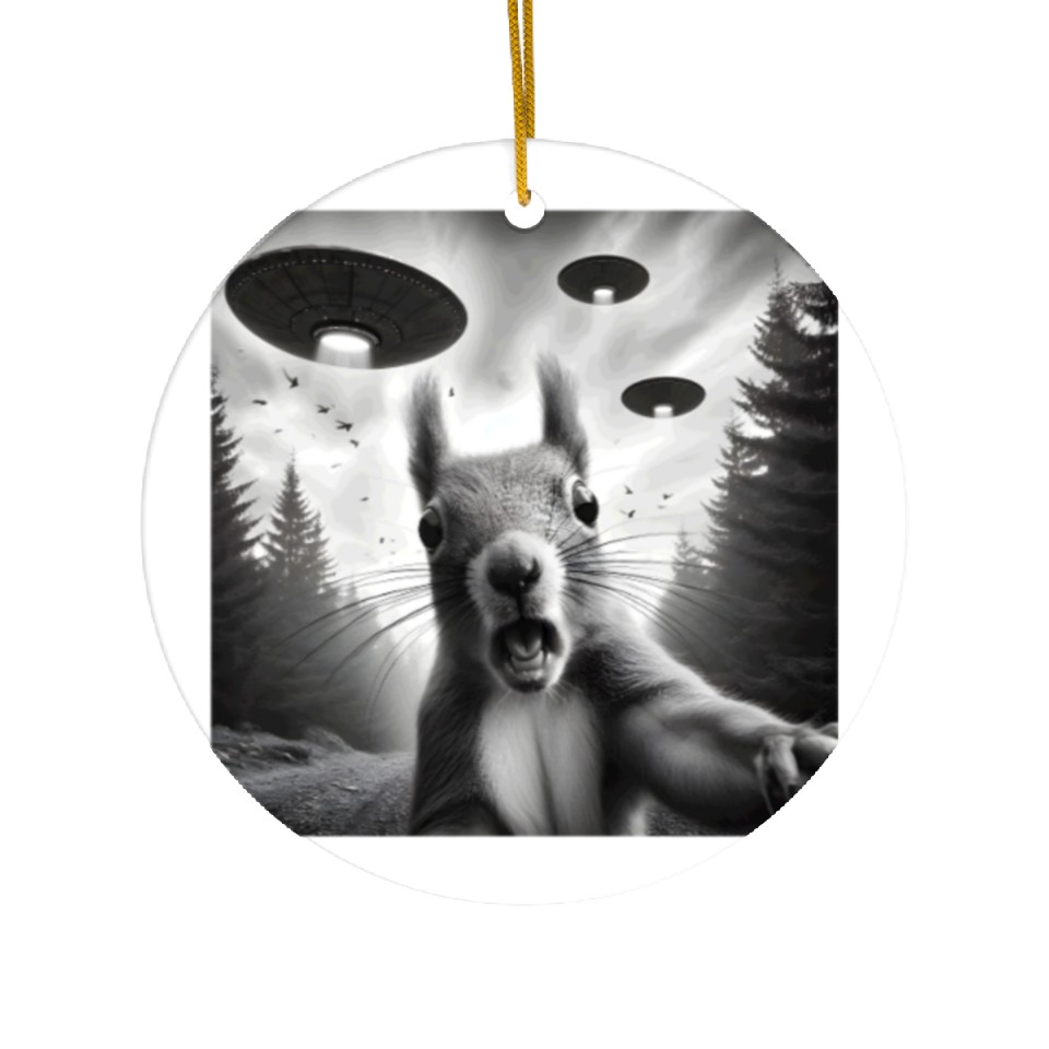 You're searching for a one-of-a-kind product Squirrel Sci-Fi Funny Graphic Selfie with UFOs Wei Ceramic Ornaments For WHITE belong theme Ceramic Ornaments at Printblur
