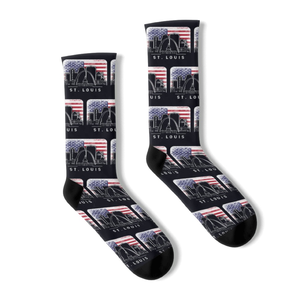Own fascinating St. Louis Missouri American Flag Vintage Socks or see more Socks products now from Printblur shop to enjoy your shopping time!