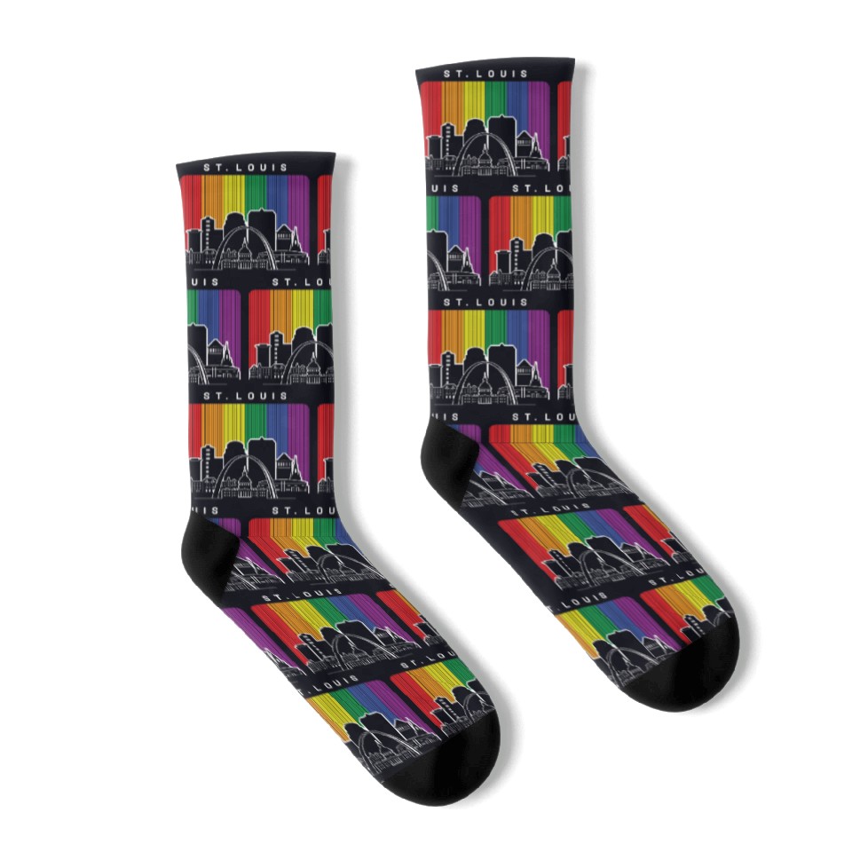 You're looking at the eye-catching product St. Louis Missouri Rainbow Flag LGBTQAI Pride Socks For Black belong theme Socks at Printblur