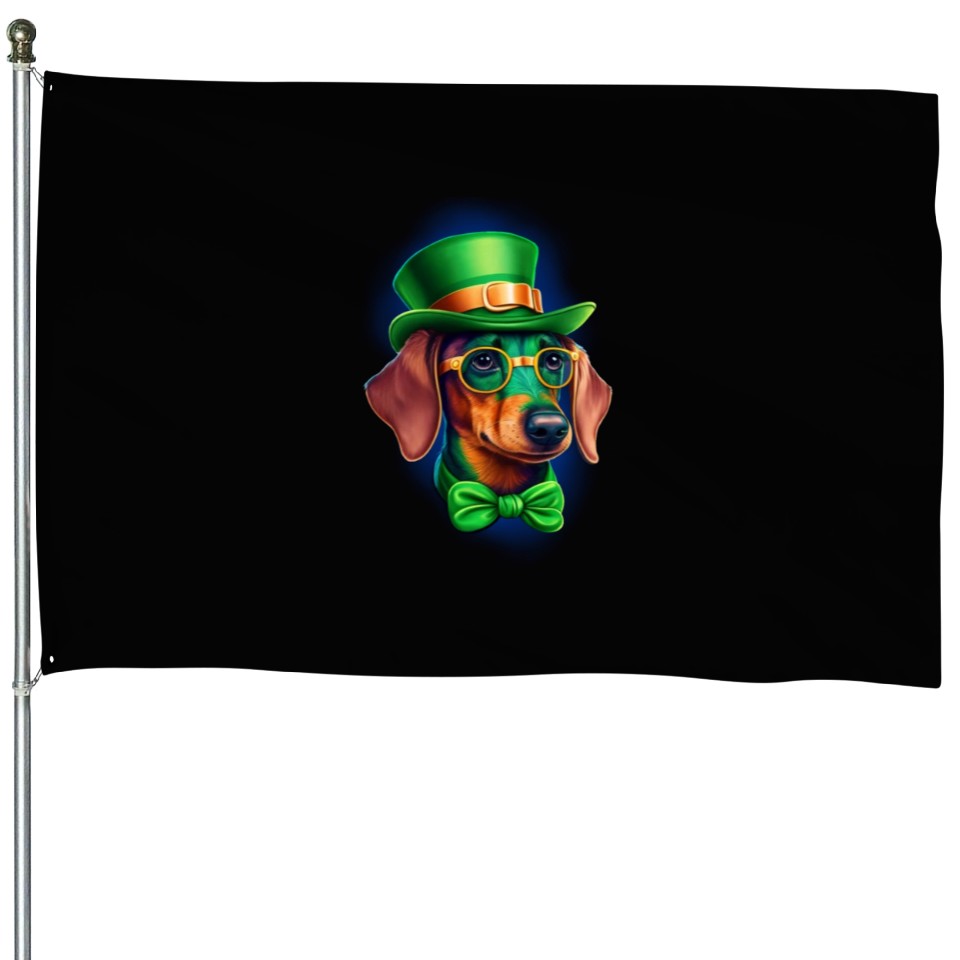 You're looking at the eye-catching product St. Patricks Day Dachshund Wiener Dog Shamrock House Flags For Black belong theme House Flags at Printblur