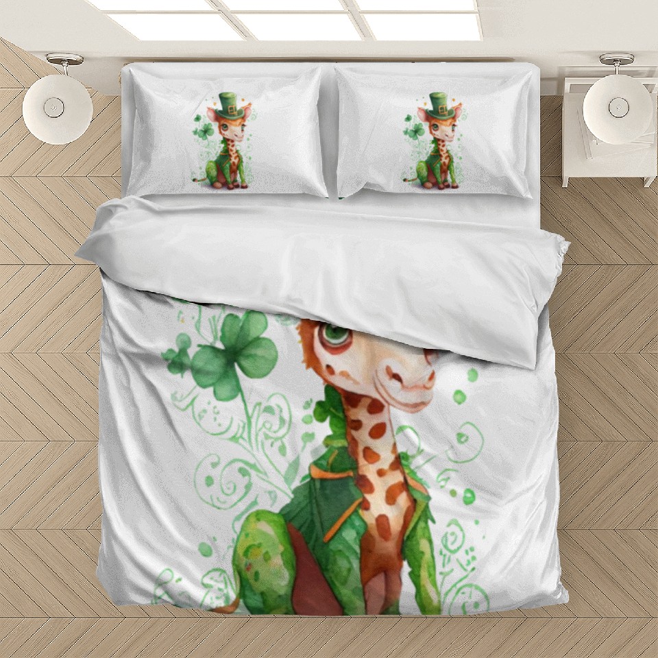 Own fascinating St Patrick's Day Irish Cute Giraffe Saint Patrick Bedding Sets or see more Bedding Sets products now from Printblur shop to enjoy your shopping time!