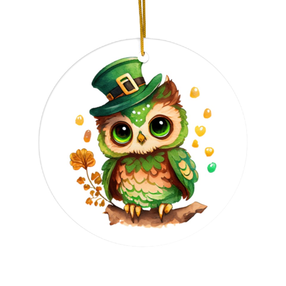 Own fascinating St Patrick's Day Irish Funny Owl Saint Patrick Ceramic Ornaments or see more Ceramic Ornaments products now from Printblur shop to enjoy your shopping time!