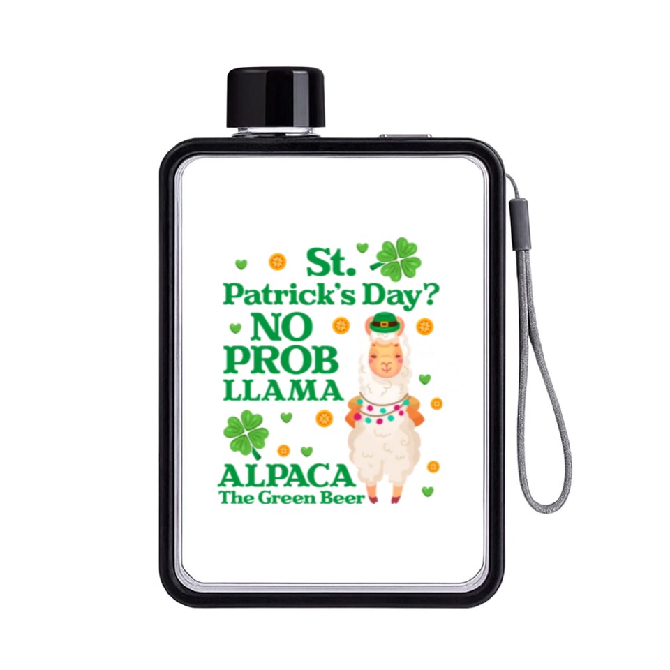 You're searching for a one-of-a-kind product St. Patrick's Day? No Prob Llama Alpaca Green Beer Flat Water Bottles For Black belong theme Flat Water Bottles at Printblur