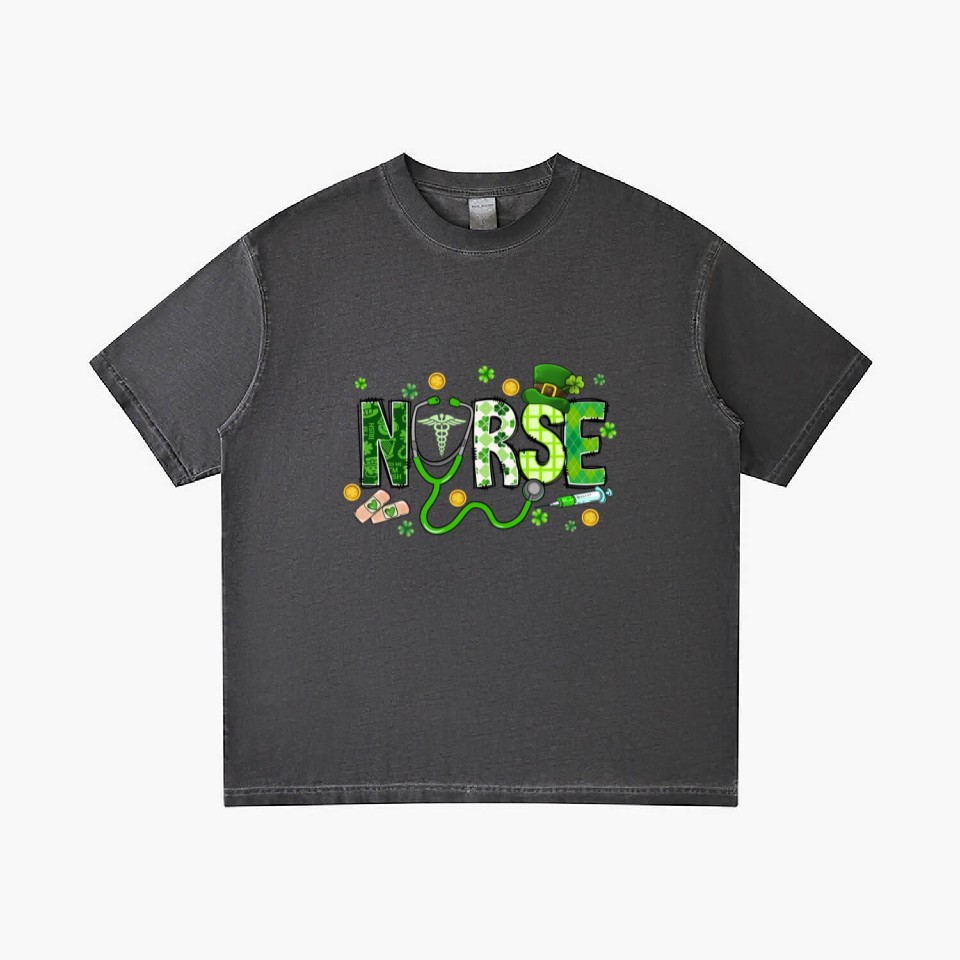 You're taking a peek at the product St Patricks Day Nurse Irish Nurse St Paddys Day Gradient T Shirts For Men Washed Black belong theme Gradient T-Shirts at Printblur