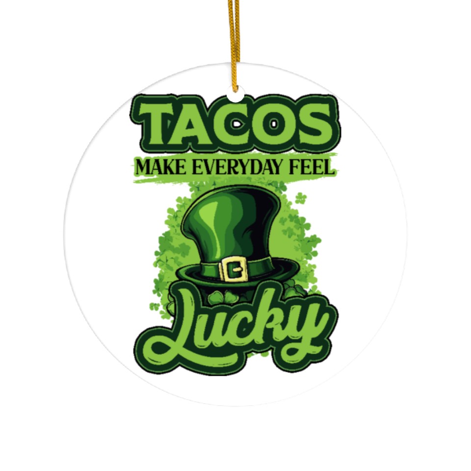 You are viewing an exclusive and elegant product St Patricks Day Tacos Make Everyday Feel Lucky Ceramic Ornaments For WHITE belong theme Ceramic Ornaments at Printblur